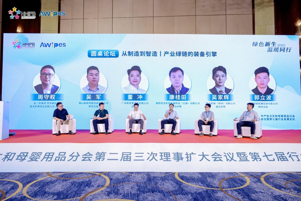 Чжоу Шоуцюань, исполнительный вице-президент Jinsanfa Group и генеральный директор Youquan Care Products Co., Ltd., председательствовал на обсуждении темы «От производства к интеллектуальному производству – двигатель оборудования промышленной зеленой цепочки». Кан Гуитянь, генеральный директор компании Autofa Noncloths Machinery Technology (Wuxi) Co., Ltd., Донг Чун, генеральный директор Guangzhou Spley Technology Co., Ltd., Го Либо, директор по продажам Zhengzhou Zhilian Machinery and Equipment Co., Ltd., У Цзюнь, директор по продажам Foshan Fengyi Intelligent Equipment Co., Ltd., У Цзяхуэй, заместитель генерального директора Lufeng Machinery (Zhengzhou) Co., Ltd. и другие представители в области специального оборудования в области гигиены, а также товаров для матери и ребенка поделились технологией свободного переключения влажных салфеток, всей линейкой мягких полотенец, интеллектуальными производственными и техническими услугами, беспилотными производственными линиями и низким весом. Последние разработки в области широких, тонких и высокоскоростных линий по производству горячего воздуха.